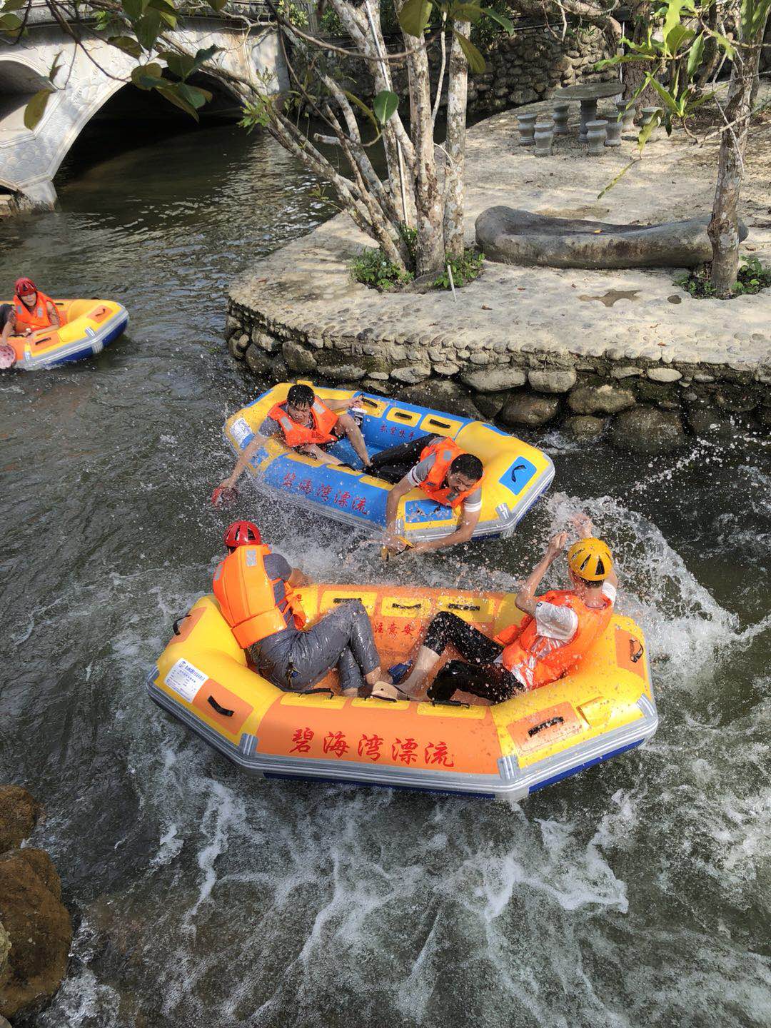 如此炎炎夏日,來到了碧海灣又怎能少得了緊張刺激,又清涼的漂流。漂流河道經漂流行家精心設計打造,保留原始風貌,渾然天成,全長3.8公里,總落差達182米,漂流落差達160多處,巨大高速落差達17米,長80多米。