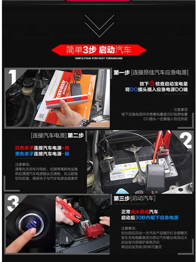 2、手機、筆記本等電子產品提供一個供應源。 汽車應急啟動電源除了啟動汽車、提供照明,還具有一個特色功能,那就是它可以為智能手機、筆記本等產品提供一個供應源。因為在汽車應急啟動電源是一種全功能新型汽車充電器,它具有四個USB接口和一個DC電源接口,其中USB接口可以為MP3、PDA、手機、數碼相機、錄音筆等數碼產品提供充電,DC電源接口則可以使用不同手機來使用不同手轉接頭充電,十分地方便。(一般情況下很多人在外出差的時候,手提電腦、手機沒電了,又在急等客戶的電話,這時候可真是想熱窩上的螞蟻了,怎么辦,周圍也沒有可用充電的地方,相信你看了本文之后也不會有疑問-汽車應急啟動電源,昂佳推薦,它能提供多接口輸出,幫助您的手機、電腦充電使用)。